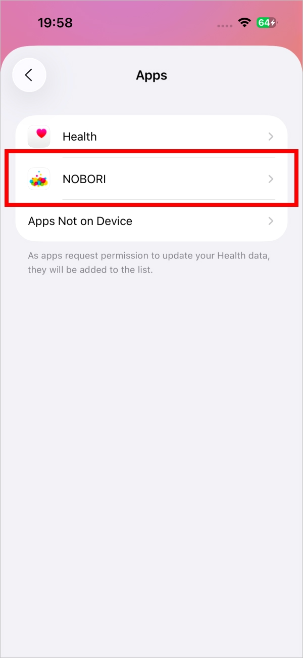 - Allow "NOBORI" to Read Data: Saves data from Apple Health to NOBORI.