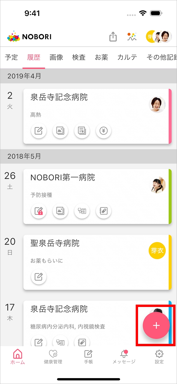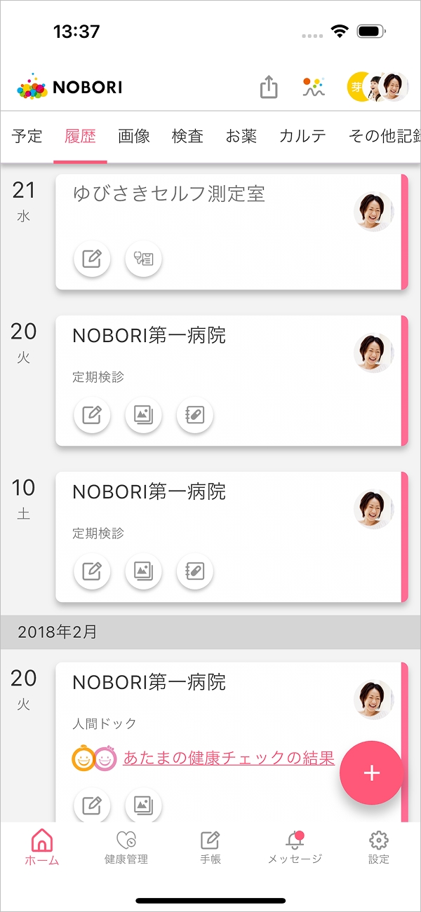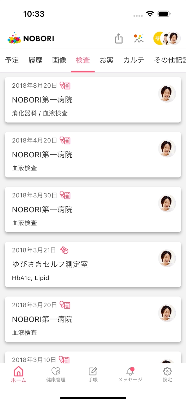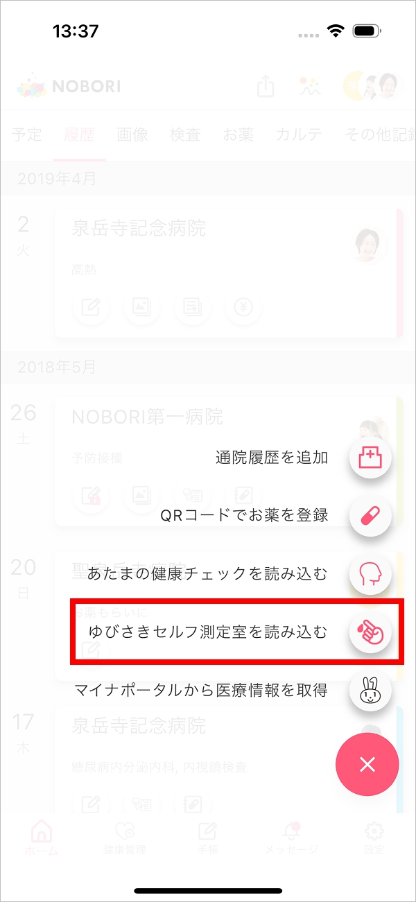 検査タブと履歴タブに、ゆびさきセルフ測定室のデータが表示されます。